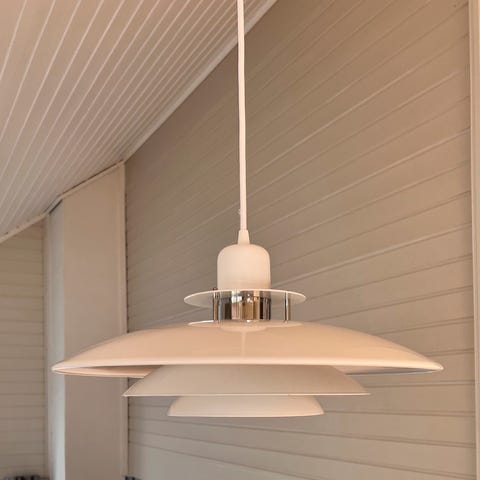 Pent brukt Diablo taklampe fra Belid. Lys grå på ytre skjerme, svart/krom innerskjermer. Gir et behagelig lys. Har G9 pæresokkel. Rund hvit ledning ca 1m. Takkopp følger ikke med.