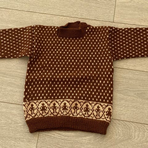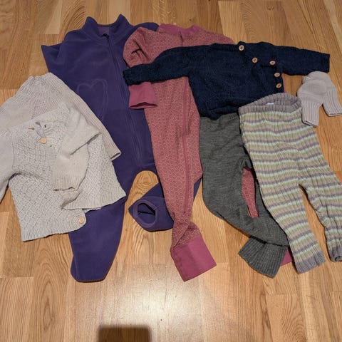 Hjemmestrikket ullgenser og ullbukse i str 2-3 år.