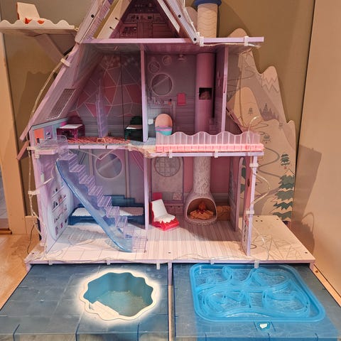Byggesett som inkluderer flere figurer, bygninger og et 'pariserhjul'