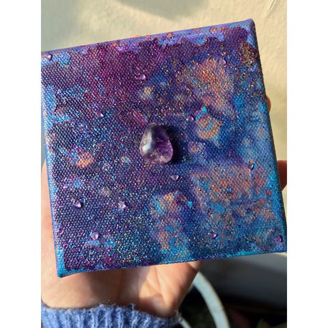 Håndmalt tre eske med motiv av Homer Simpson i blått og gult. Esken har hengslet lokk og låsemekanisme foran. Innvendig er esken ubehandlet tre. Egnet for oppbevaring av små gjenstander.
