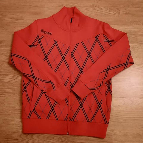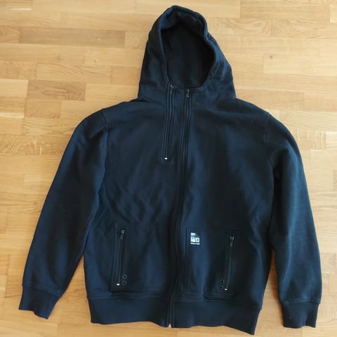 ‘Varsity’-jakke, kjøpt i Spania. Bomull og polyester. Selges billigere pga. en mørk flekk på ene armen. Mulig den kan vaskes bort.