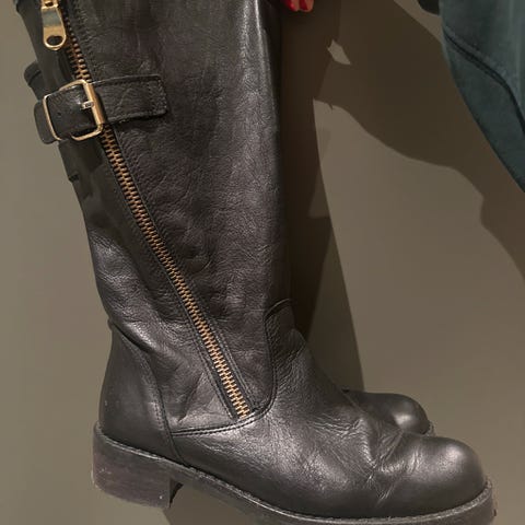 Nydelige, lett forede svarte skinnstøvletter i str 38 fra Friboo. Nesten ikke brukt. Med dekorative gullhjerter. Nypris 512,- på zalando