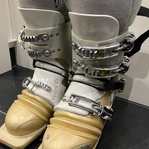 Godt brukt telemarks støvel men fortsatt mange gode svinger igjen.