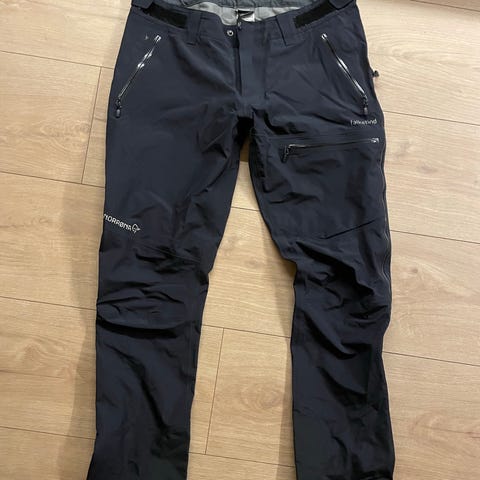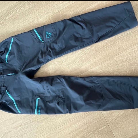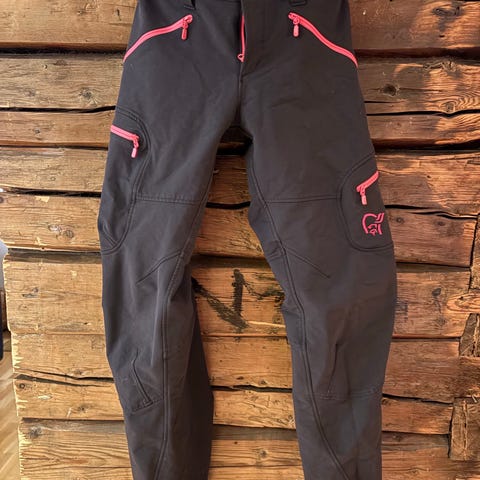 Norrøna Fottur bukse for damer i størrelse L. Buksa er svart med rosa detaljer, egnet for fottur og friluftsliv.