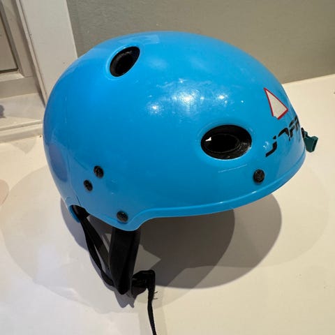 CCM hockeyhjelm med avtakbart metallgitter. Hjelmen er rød og utstyrt med justerbar hakestropp for sikker passform.