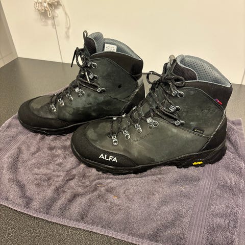 Alfa skinnsko i størrelse 40, svart farge. Skoene har snøring og gummisåle med mønster for godt grep.