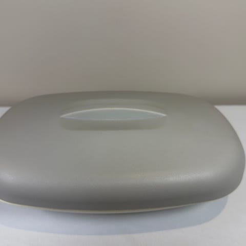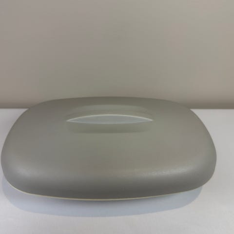 Retro Tupperware grønnsaksdamper. Mangler rist. Består kun av lokk og underdel. Har en del merker på underdelen, og litt på lokket. Ellers hel.