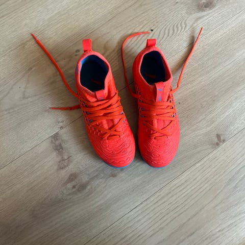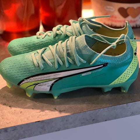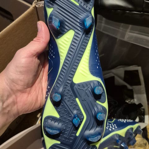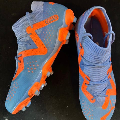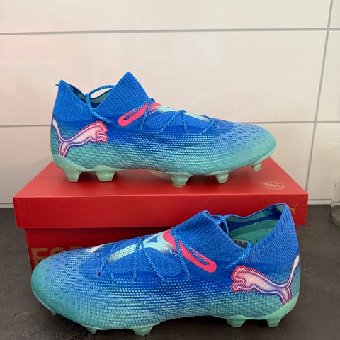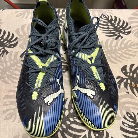 Puma fotballsko i blå farge. Skoene har en strikket overdel for god passform og fleksibilitet. Designet for sportsbruk med knotter under sålen for grep på gressbaner/ kunstgress.