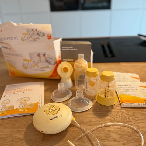 Medela swing maxi brystpumpe. Brukt ved første barn. Følger med to skjold og håndtak til håndpumpe. Har ingen flasker da de var oppbrukt.