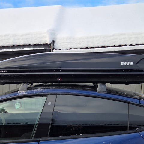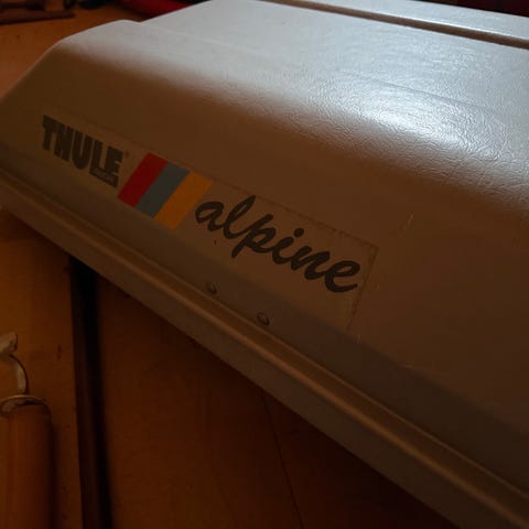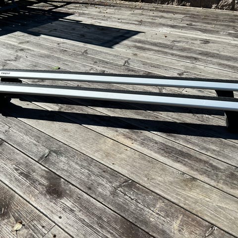 Thule takboks i sølvfarge. Følger med 2 takstativ og 2 nøkler.
