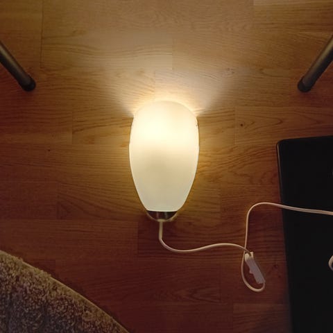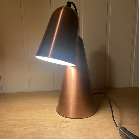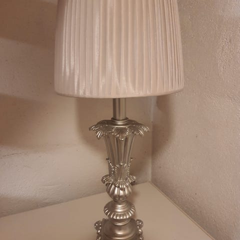 Selger denne bordlampa med hvit skjerm og sølvfarget stativ. Fungerer som den skal. Selges pga. flytting.