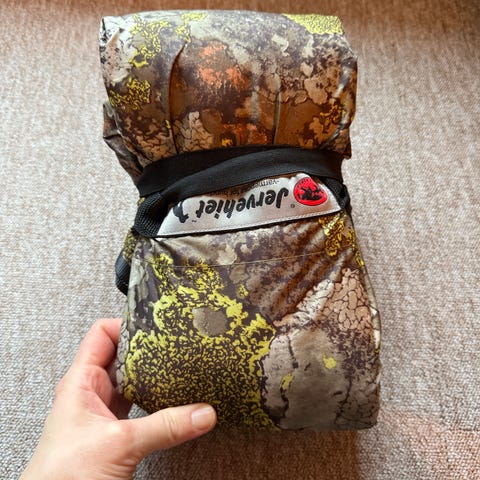 Jervehiet Medium varmepose for hund, designet for hunder opptil 20 kg. Varmeposen har et kamuflasjemønster og er laget i slitesterkt materiale.