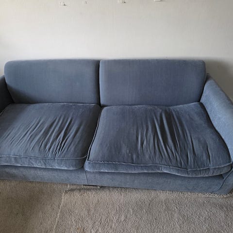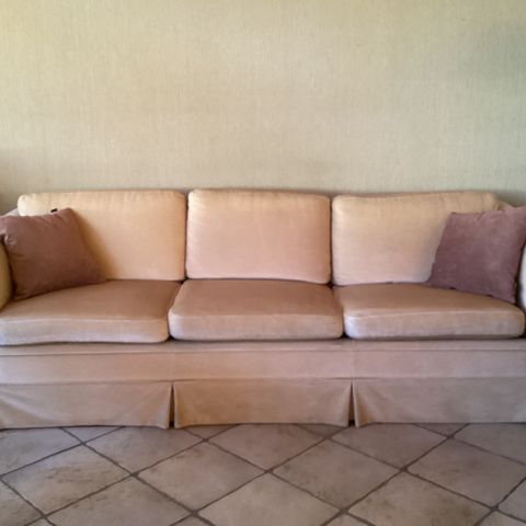 3-seters sofa fra L.K. Hjelle Møbelfabrikk AS gis bort. Sofaen er 20-30 år gammel. Bredden er 195 cm. Høyden er 80 cm. Setehøyden er 45 cm.