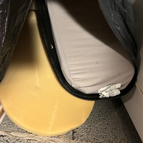 Vognen er brukt og godt slitt, med tydelige bruksspor, skitt og noe rust på metalldeler (se bilder).