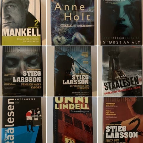 Lindrig bok samling utgitt av Helge Erichsens Forlag i Oslo, 1977. Inneholder tekster og illustrasjoner, inkludert dikt og historier som 'Mets hvite impulz' og 'Smeden, sønnen og bror min'. Bøkene er innbundet med illustrert omslag.