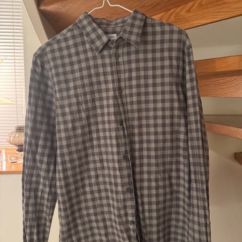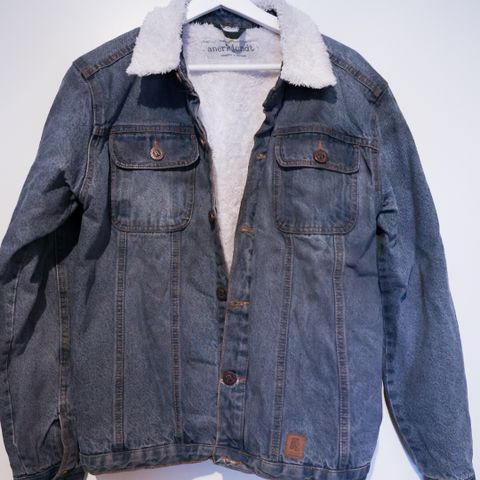 Herre/unisex-jakke fra Anerkjendt (merkelapp sier M/50). Den er pent brukt, men mangler knapper på de to nederste lommene. Fungerer som lett vinterjakke, og har god hette. Noen nupper, som nok enkelt kan fjernes med ullkam eller nuppefjerner.