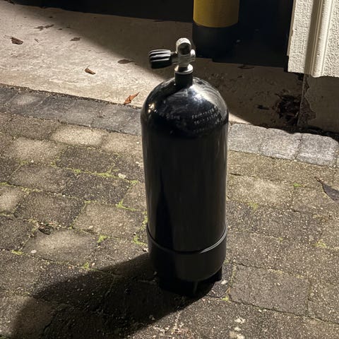 Selger 2 stk 15 l 200 bar, flaskene er strøkne! Men må trykk testes før bruk.