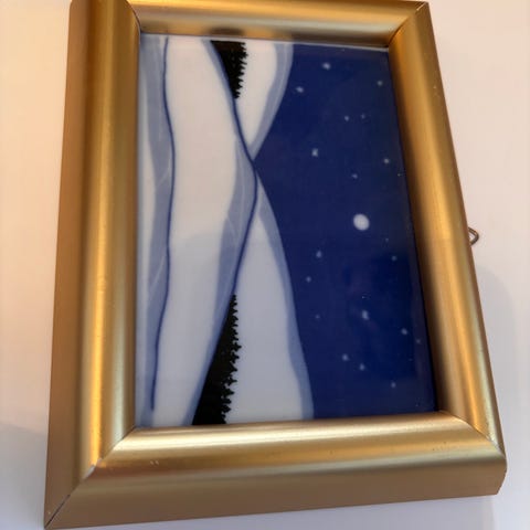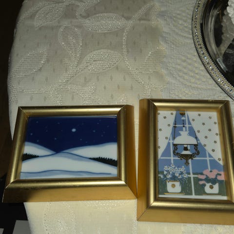 Porselensbilde fra Porsgrund med røde valmuer. Rammemål er 11,5 x 14,5 cm. Krok for oppheng på baksiden av rammen. Bildet er designet av Jan Harr.