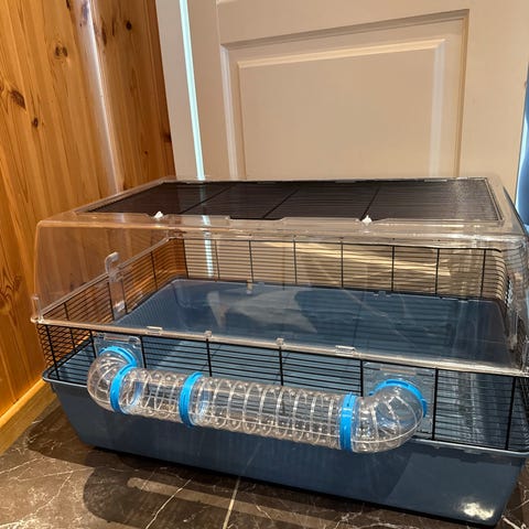 Stor plass og kan passe til ulike gnagere. Alt utstyr du ser på bildene følger med. Ett av bildene viser litt rust, ellers i god stand.