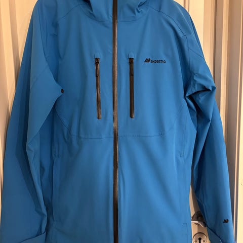 Skogstad Fottur unisex jakke i størrelse L. Jakken har hette og er designet for fottur. Mørkeblå grunnfarge.