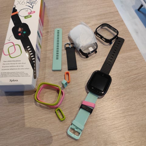 Vi har tvillinger og selger 2 stk Xplora x6play med tilbehør! Ekstra reimer og ladere følger med. Klokkene er pent brukt i to år. Selges for kr 800,- pr stk Den som er rosa på bildet er solgt🤗