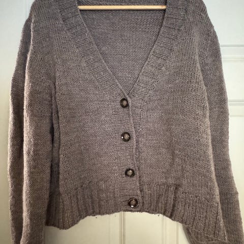 Selger en hjemmestrikket jakke fra Petit Knit sine oppskrifter. Den er strikket i Fabel og Kid Silk. Kun brukt en gang. Selges da den ble for stor for meg. Den er i utgangspunktet strikket I L men er nok er XL eller større. Målene på jakken er :L 65 B 55 Armlengde 47.