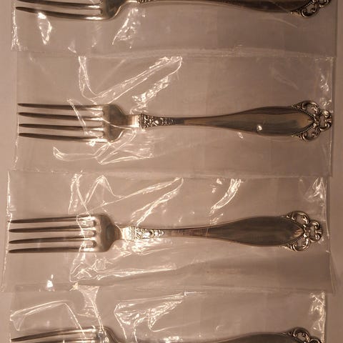 Sett med 4 teskjeer i 830S sølv. Mønster heter Marguerit. Noen små bulker/merker. Gi bud!