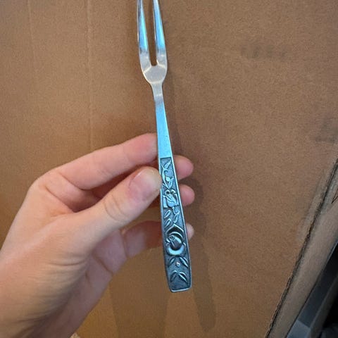 3) Koldgaffel 12,5 cm Usikker på stempel/logo, Sannsynligvis også Nysølv(?) Kr 100,-