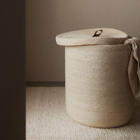 Rund søppelbøtte med lokk. Egnet for innendørs bruk.