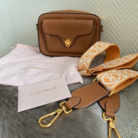 Lekker liten skinnveske/lommebok. Justerbar og avtagbar skulderreim.