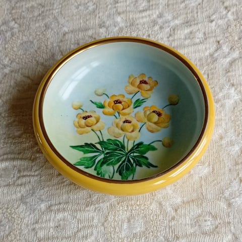 Små trommer med trekt av skinn. Trur det er av kuskinn, men ikke sikker. Usikker på alder. Kun brukt som pynt.