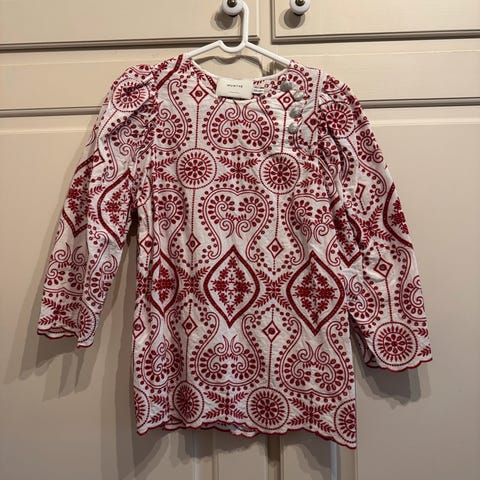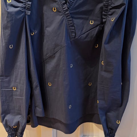 Shellcu fra MUNTHE. Vakker bluse fra MUNTHE med en nydelig kombinasjon av blondedetaljer og pinstripes. Shellcu har en rett passform med klassisk krage, v-hals og voluminøse ballongermer. Dekorative blondedetaljer gir et feminint preg. Ny pris 2999kr. Str 40. Kan føles noe større på størrelsen pga rett og vid passform.