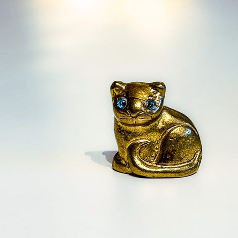 Fin liten 9-halet katt i tauverk laget i makrame. Pent håndarbeid