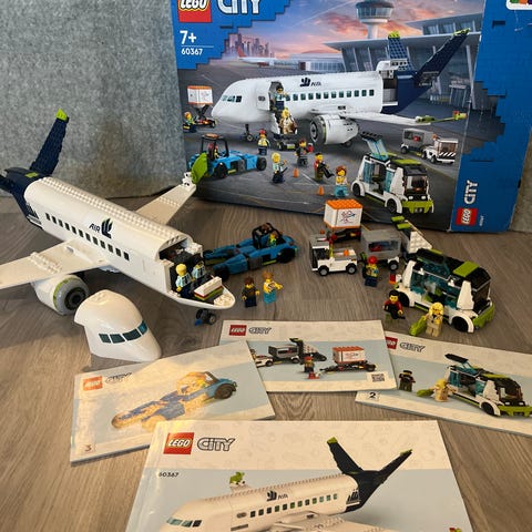LEGO City flyplass lekesett som inkluderer et stort passasjerfly, kontrolltårn, flere kjøretøy og minifigurer. Settet består av detaljerte byggeklosser i plast, egnet for barn som liker by- og transporttema. Lekesettet gir mulighet for konstruksjon og rollelek relatert til flyplassmiljø.