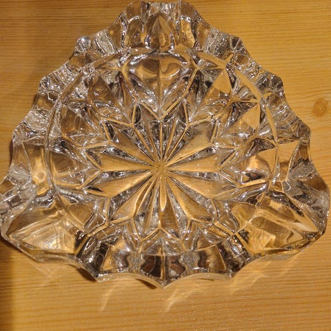 Fint lite krystallfat. Supert til servering eller oppbevaring/pynt. Stjerne mønster