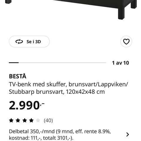 Bestå TV benk fra IKEA i fargen hvitbeiset eikemønster. Kjøpt brukt. Ingen synlige bruksmerker utenom en dør som er montert litt skjevt, se siste bilde. Må hentes i 5. etasje med heis.