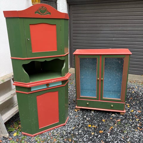 Pent vitrineskap med stort potensial hvis man bruke litt tid på det.