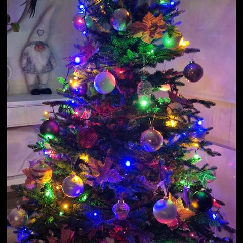 Kjøpt på Skeidar for noen år siden. Følger med pose til å ha juletre i.