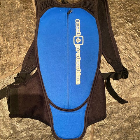 Bullfighter ryggplate selges. 6 links eller skinner med sele om to kroppsbelter med borrelås.