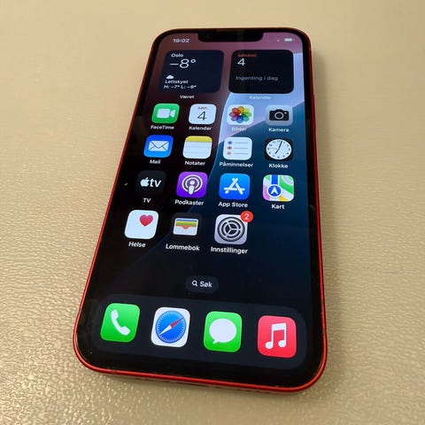 Apple iPhone 12 med 64 GB lagringskapasitet. Telefonen har en kompakt størrelse og leveres i hvit farge. Produktet inkluderer original emballasje og ladekabel. 84 i batterikapasitet.