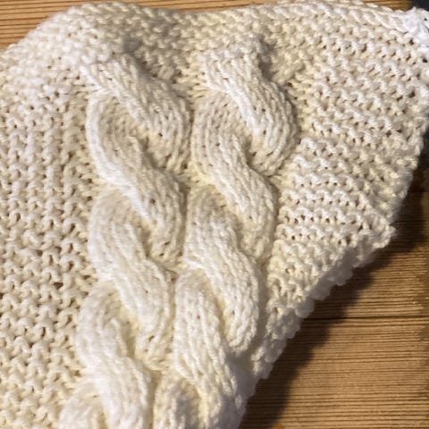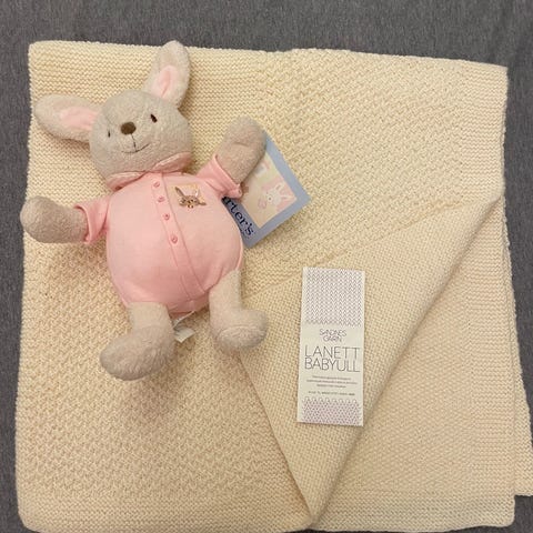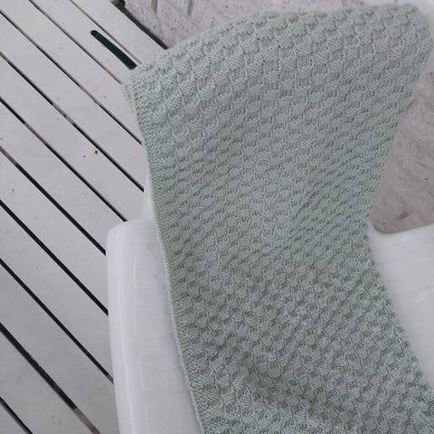 Strikket babyteppe med hullmønster. Strikke i merinoull, str ca 78 x 72