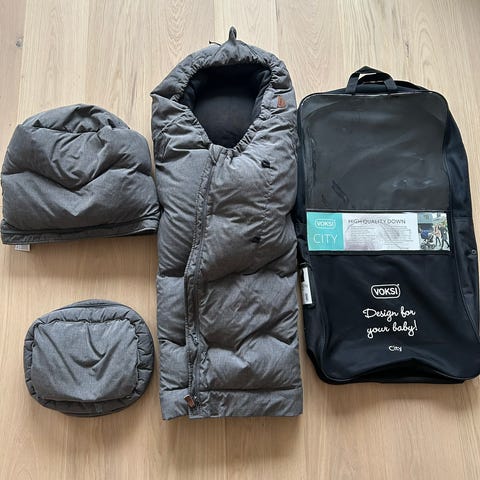 Vognpose med uttagbar dundyne. Passer derfor både vinter og vår/høst. Et lite hull i det ytterste stoffet som enkelt kan syes.