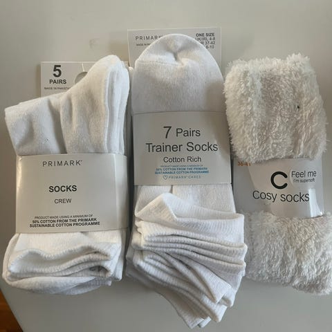 7 par sokker selges samlet, ubrukte med lapp på