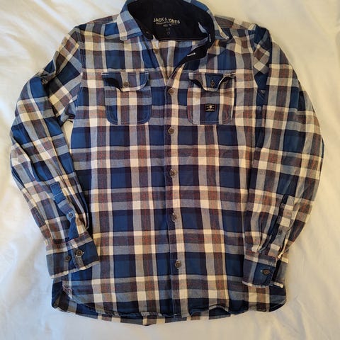 Jack & Jones, Jack and Jones Premium, retro, vintage, rutete skjorte, flanellskjorte, grå, sort, beige, casual, hverdagsbruk, herreskjorte, brukt, rimelig, klassisk, tidløs, høst, vinter, skjorte, herreskjorte, streatwear