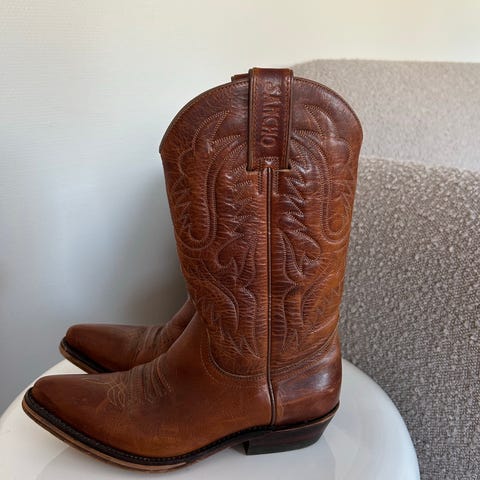 Selger ett par cowboy boots i str 38, ekte skinn, nesten ikkje brukt. Beige farge