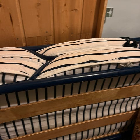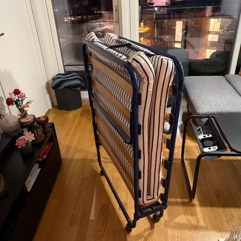 Sammenleggbar gjesteseng selges, madrass medfølger.
