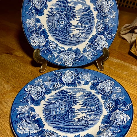 Klassisk blått og hvitt transferware som passer like godt til hverdags som til pynt.
