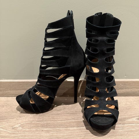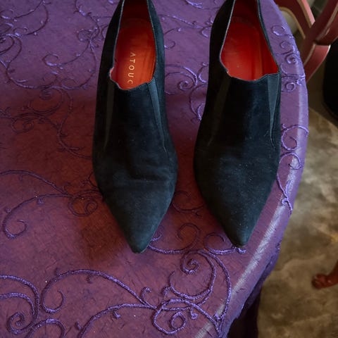 Høyhælte sko fra Lotta Larsen med ca 6 cm høye hæler i størrelse 39. Skoene er svarte og har en klassisk design. Egnet for formelle anledninger eller hverdagsbruk hvor hæler foretrekkes.