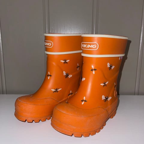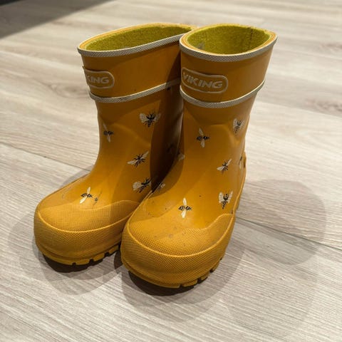 Selger Viking gummistøvler i størrelse 24. Gule med søte bier på 🐝 Godt, men pent brukt. Noe misfarge etter bruk, men hele og fine.