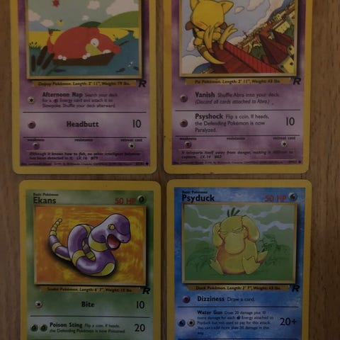 First Edition kort fra Team Rocket settet. Kortene er pent brukt